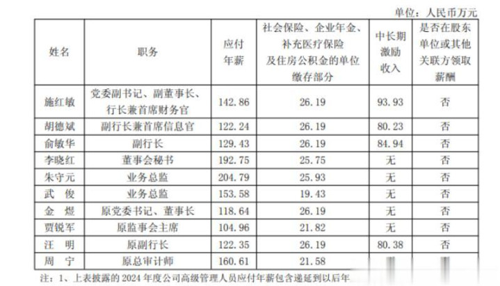 凭据上海银行发布的2024年高管薪酬公告以及2023年高管薪酬公告,包括施红敏、胡德斌、李晓红、朱守元等在职高管,举座薪酬水平均较2023年有显豁飞腾。以行长施红敏为例,派遣年薪达到了142.86万元,较2023年增长了24.49%。